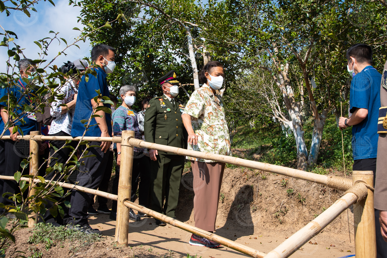 At 10:10am, the Princess arrived at the Tea Oil Crop Research and Development Project office in Pang Mahan, where she watered and fertilized the tea oil tree that she grafted on 15 February 2018. The Princess then planted a red tea-oil camellia and a tea oil tree from Guangxi autonomous region in China.