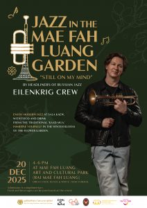 The Mae Fah Luang Foundation under Royal Patronage, in collaboration with the Creative Economy Agency (CEA) and the Tourism Authority of Thailand (TAT), proudly presents JAZZ IN THE MAE FAH LUANG GARDEN: “Still on My Mind.” Set against the scenic winter landscape of the Mae Fah Luang Art and Cultural Park in Chiang Rai, this special performance will take place on 20 December 2025, from 16:00 to 18:00 at Sala Kaew.